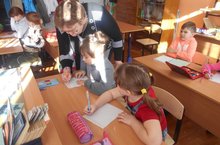 Сегодня в 1 классе прошла игра "Знатоки русского языка". Ребята с увлечением отгадывали ребусы, собирали слова из слогов. Дружно участвовали в конкурсах : "Типография", "Живое слово","Пятерка" . Победила команда "Веселая семейка"