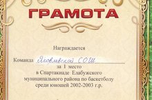 Команда юношей Яковлевской школы заняла I место в Спартакиаде Елабужского муниципального района по баскетболу среди юношей 2002-2003 года рождения. Поздравляем всех с победой!