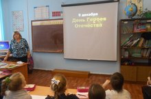 В школе прошли мероприятия , приуроченные дню Героев Отечества: конкурс рисунков среди учащихся начальных классов и тематические классные часы . Учащиеся познакомились с историей праздника,подвигами наших земляков.