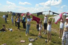 Сегодня в пришкольном лагере происходили разные неожиданности: появилась комната "Страха". Ребята попадали в различные ситуации , участвовали в конкурсах "Гигантскик шаги", "Грибники","Встречный бой", в спортивной эстафете и т.д. Трудовой десант "Чистюля" занимались уборкой памятника. После обеда все дети поделившись на две команды приняли участие по распутыванию паутины на участке из ниток. Было много веселья, смеха и шуток.