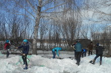 Сегодня прошёл первый субботник по уборке территории школы от мусора и снега.Потрудились на славу!!