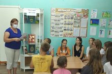 Сегодня, 17 июля, в лагере был День Татарстана. Евстафьева Н.П. оформила выставку книг про Татарстан. Лазутина И. Н., худрук Яковлевского СДК, провела с детьми викторину про наш край.Затем она провела игру с детьми " Тюбетейка". Дети правильно отвечали на вопросы викторины. Молодцы!