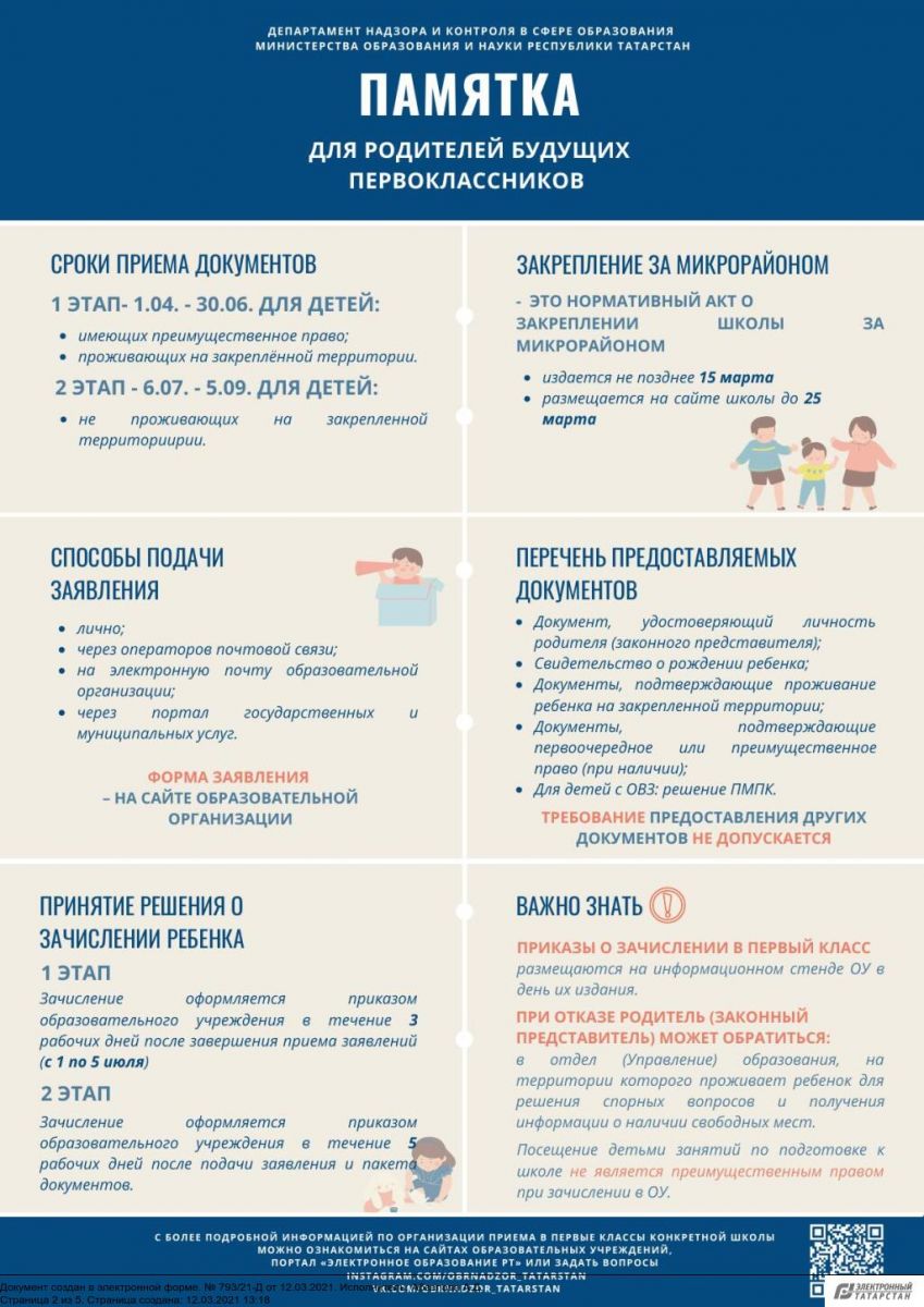Для родителей будущих первоклассников/Булачак беренче сыйныф укучыларының әти-әниләре өчен 18.03.2021