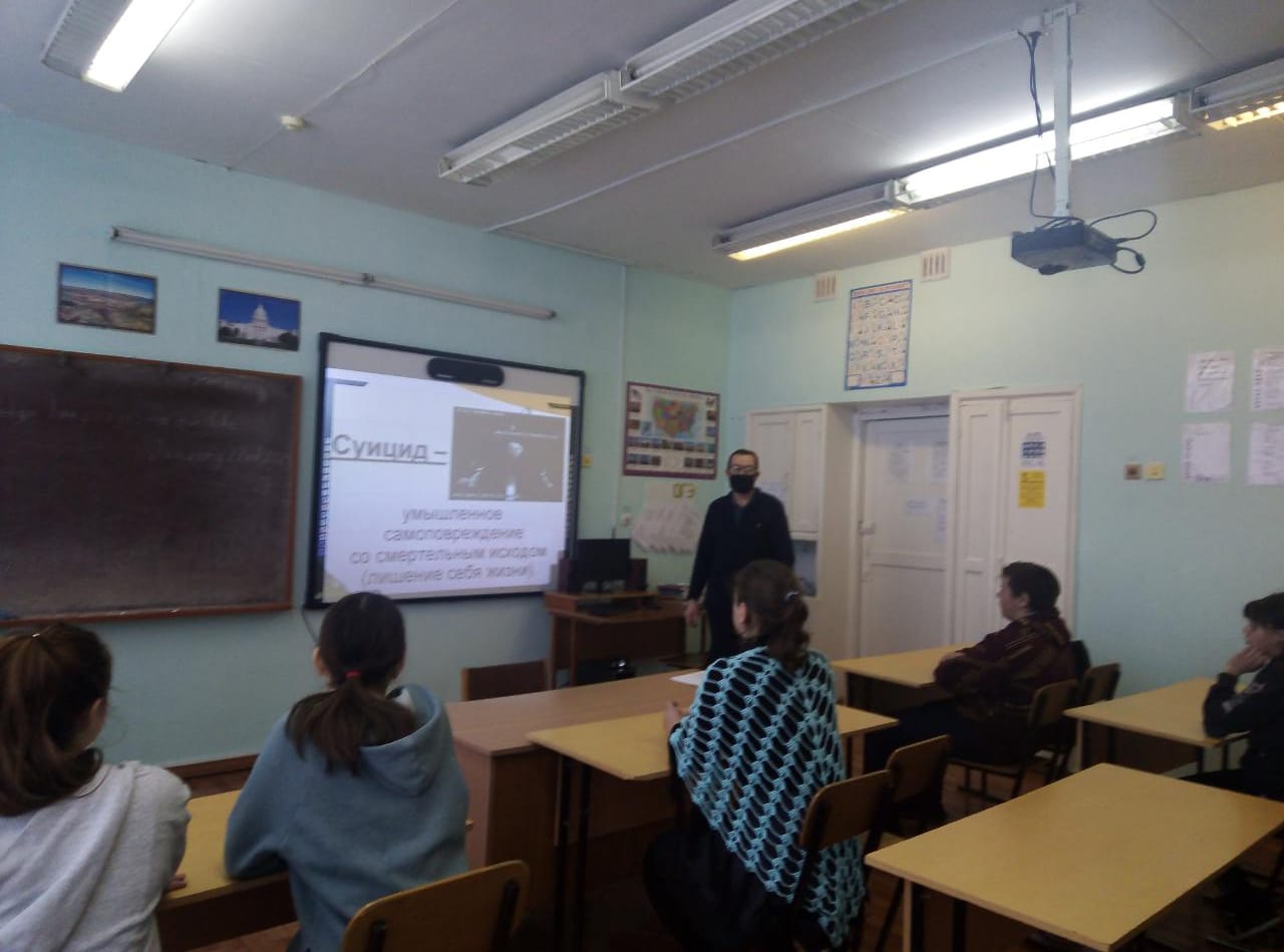 Укучыларда деструктив тәртипне профилактикалау эшен көчәйтү максатыннан мәктәптә «Безнең балаларның тормышын саклыйк! " дигән темага ата-аналар җыелышлары үткәрелде.Укучылар белән " Мин һәм дөнья«,"Тискәре эмоцияләрне ничек җиңәргә"," Мавыгулар дөньясы"," Яшәү – бик шәп!"дигән темаларга сыйныф сәгатләре уздырылды. Һәр сыйныф почмагында Гомумроссия номеры 8-800-2000-12 булган балалар ышаныч телефоны номеры язылган реклама листовкалары бар