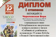 Учащиеся нашей школы приняли активное участие в республиканском творческом конкурсе и рисунков чтецов " Солдатами не рождаются".Учащаяся 7 класса Череповская Вера награждена дипломом 1 степени за победу в муниципальном этапе и свидетельством за участие в республиканском этапе .