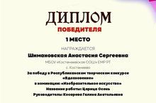 Шимановская Анастасия, ученица 3 класса получила 1 место в Республиканском творческом конкурсе "Вдохновение" / Шимановская Анастасия, 3нче сыйныф укучысы "Вдохновение"республика иҗади конкурсында 1нче урынны алды.