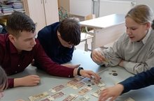 Учащиеся 7 класса на урок истории принесли старые монеты и банкноты, выпущенные за период 1708 - 1995 г.г.\7 нче сыйныф укучылары тарих дәресенә 1908-1995 елларда чыгарылган иске тәңкәләр һәм банкноталар алып килделәр.