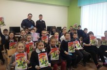 Для учащихся начальных классов сотрудники ГИБДД провели обучающее занятие, в ходе которого рассказали ребятам о важности взаимодействия пешехода и водителя на дороге, познакомили со сводом правил, регулирующих обязанности участников дорожного движения, а также с используемой терминологией и понятиями в сфере безопасности дорожного движения.В завершение мероприятия ребята задали инспектору много вопросов по данной тематике, а также по некоторым из них, состоялось совместное обсуждение .Но самым приятным в этой встрече был просмотр мультфильма и подарок -книга от сотрудников ГИБДД ./ЮХИДИ хезмәткәрләре башлангыч сыйныф укучылары өчен дәрес үткәрделәр, аның барышында балаларга җәяүле һәм машина йөртүчеләрнең юлда үзара хезмәттәшлеге мөһимлеге турында сөйләделәр, юл хәрәкәтендә катнашучыларның вазыйфаларын көйләүче кагыйдәләр җыелмасы, шулай ук юл хәрәкәте иминлеге өлкәсендә кулланыла торган терминология һәм төшенчәләр белән таныштырдылар.Чара ахырында балалар инспекторга әлеге тематика буенча күп сораулар бирделәр, шулай ук аларның кайберләре буенча уртак фикер алыштылар .Әмма бу очрашуда иң күңеллесе мультфильм һәм бүләк-ЮХИДИ хезмәткәрләреннән килгән китап булды .