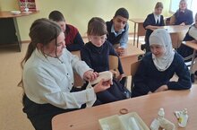 5-6 класс укучылары Бөтендөнья беренче ярдәм күрсәтү көненә багышланган чарада катнаштылар. Укучылар база күнекмәләрен үзләштерделәр — яраларны эшкәртү һәм сузылуларны фиксацияләү, шулай ук зыян күрүчеләргә психологик яктан ярдәм итәргә өйрәнделәр. -