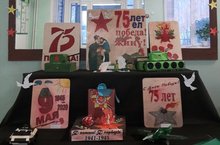На первом этаже школы оформлена выставка творческих работ учащихся «Славной Победе посвящается...», посвященная 75-летию Победы в Великой Отечественной войне 1941-1945 годов./ Мәктәпнең беренче катында укучыларның кул эшләреннән торган " Данлы Җиңүгә багышлана...» дип исемләнгән күргәзмә эшли, ул 1941-1945 еллардагы Бөек Ватан сугышында Җиңүнең 75 еллыгына багышлана. -