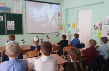 В начальных классах был проведен урок мужества, посвященный подвигу 6-й роты, 104 батальона Псковской воздушно-десантной дивизии. Дети с интересом слушали выступление о мужестве и героизме наших десантников, которые погибли при защите нашей великой Родины. / Башлангыч сыйныфларда 6нчы рота, Псков һава-десант дивизиясенең 104 батальоны батырлыгына багышланган Батырлык дәресе үткәрелде. Балалар зур кызыксыну белән безнең десантчыларыбызның батырлыгы һәм геройлыгы турында тыңладылар. -