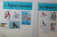 Была оформлена выставка рисунков «Зимующие птицы». На своих рисунках учащиеся изобразили воробья, снегиря, клеста, синичку, сидящих на ветке дерева, на кормушке.