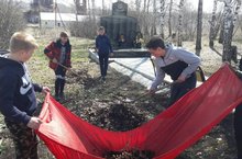 Учащиеся школы в с.Лекарево, п.Малореченский, с.Большие Армалы убирались возле памятников.Лекарево мәктәбе укучылары Малореченск поселогы, Олы Армалы авыллары һәйкәлләрен җыештырдылар. -