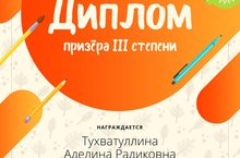 ТухватуллинуАделину, ученицу 6 класса, занявшую 3 место в олимпиаде по математике от проекта videouroki.net. Желаем дальнейших успехов! -