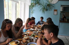 Сегодня, 26 июня, мы выехали в город. Первой остановкой было футбольное поле, мы разделились на две команды и играли в футбол, как настоящие футболисты.