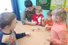 08.02.2024 года в детском саду "Радуга" состоялся тематический день, посвященный Дню российской науки "Путешествия в страну науки". Вместе с детьми был проведён опыт с сырыми куриными яйцами. Во время опыта дети узнали, что в простой воде яйцо тонет, а в солёной нет. Ребята узнали много интересного и полезного/ 08.02.2024 елда "Радуга" балалар бакчасында "Фән иленә сәяхәт" Россия фәне көненә багышланган тематик көн узды. Балалар белән бергә чи тавык йомыркалары белән тәҗрибә үткәрелде. Тәҗрибә вакытында балалар гади суда күкәй батуын, ә тозлы суда батмавын белделәр. Балалар бик күп кызыклы һәм файдалы нәрсәләр белделәр.