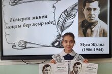 Сегодня на базе МБОУ «Инженерно — технологический лицей» ЕМР РТ прошел муниципальный конкурс, посвященный творчеству татарского поэта Мусы Джалиля «Жизнь моя песней звучала в народе». Алиева Алсу ученица 5 класса выступила в двух номинациях и стала лауреатом. / Бүген ТР АМР «Инженер — технология лицее» МББУ базасында татар шагыйре М.Җәлил иҗатына багышланган «Гомрем минем моңлы бер җыр иде...» дип исемләнгән муниципаль бәйге узды. 5нче сыйныф укучысы Алиева Алсу ике номинациядә катнашып