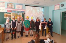 Сегодня в нашей школе состоялся праздник Осени для учащихся начальной школы «Осень в гости к нам пришла». На празднике ребята встретились с волшебницей Осенью и с ее братцами Сентябрем, Октябрем и Ноябрем. Вместе с ними они пели песни, рассказывали стихи, узнали что растет в огороде, играли в разные игры. Все остались довольны праздником./ Бүген безнең мәктәптә башлангыч мәктәп укучылары өчен «Көз безгә кунакка килде»көз бәйрәме узды. Бәйрәмдә балалар көз көне сихерче һәм аның абыйлары Сентябрь, Октябрь һәм Ноябрь айларында очраштылар. Алар белән бергә җырлар җырладылар, шигырьләр сөйләделәр, бакчада нәрсә үскәнен белделәр, төрле уеннар уйнадылар. Барысы да бәйрәмнән канәгать калды.