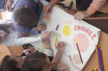 Сегодня, в День Космонавтики, учащиеся начальных классов совершили путешествие по планетам, узнали сколько планет в солнечной системе, кто был первым космонавтом ,кто построил для него ракету, что такое «открытый космос» и многое другое. В завершение классного часа учащиеся получили коллективное творческое задание – нарисовать рисунок ко Дню космонавтики./ Бүген, Космонавтика көнендә, башлангыч сыйныф укучылары планеталар буйлап сәяхәт кылдылар, Кояш системасында ничә планета ,кем беренче космонавт, кем аның өчен ракета төзегән, нәрсә ул «ачык космос» һәм башка бик күп нәрсәләр белделәр. Сыйныф сәгате ахырында укучылар Космонавтика көненә рәсем ясау буенча коллектив иҗади бирем алдылар.