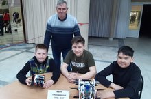 17 апреля 2022 г. в городском Дворце культуры проходили VII муниципальные соревнования по робототехнике. Обучающиеся объединения «Робототехника» Гилязев Максим и Быстров Вадим заняли 3 место в номинациях «Управляемое сумо» и «Марафон шагающих роботов»./ 2022 елның 17 апрелендә Шәһәр мәдәният сараенда робототехника буенча VII муниципаль ярышлар узды. «Робототехника» берләшмәсе укучылары Гыйләҗев Максим һәм Быстров Вадим «идарә ителә торган сумо» һәм «атлаучы роботлар марафоны» номинацияләрендә 3 нче урынны яуладылар.