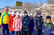 В целях безопасности детей на дорогах с учащимися начальных классов была пешеходная экскурсия . Обращали внимания на объекты улично-дорожной сети, находящиеся на маршрутах движения детей в школу. / Балаларның юлларда куркынычсызлыгы максатыннан башлангыч сыйныф укучылары белән җәяүле экскурсия үткәрелде . Балалар хәрәкәте маршрутларында булган урам-юл челтәре объектларына игътибар иттеләр.