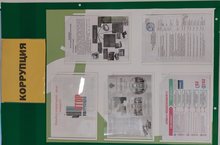 На первом этаже в фойе школы обновлен стенд «Коррупция», добавлена листовка «Ответственность за коррупцию»./Мәктәпнен беренче каты фойесында «Коррупция» стенды яңартылды, «коррупция өчен җаваплылык» дигән листовка өстәлде.