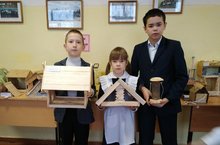 Участники регионального конкурса «Лучшая кормушка» в рамках Всероссийской природоохранной акции «Покормите птиц зимой-2019», проводимый Национальным парком «Нижняя Кама»: Гильмуллина Алина (1кл), Михайлов Адель (3кл) и Амиров Делюс (6кл).