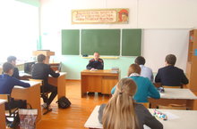 Укучылар алдында Россия Эчке эшләр министрлыгының Алабуга районы буенча бүлегенең полиция участок уполномоченные Нуретдинов Ринат Миннеахат улы чыгыш ясады. Ул балигъ булмаганнарның хокуклары һәм бурычлары, ФЗ №71 РТ, шулай ук наркотик һәм психотроп матдәләрне законсыз кулланган өчен җинаять җаваплылыгы турында сөйләде.