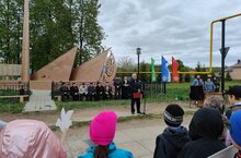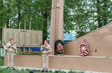 "Ватан өчен һәлак булганнарга!" обелиск янында митинг.