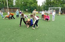 День веселых игр. Дети играли в различные веселые игры на свежем воздухе.