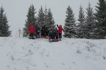 "Кышкы уеннар" - чаңгыда, чанада шую / "Зимние забавы" - катание на лыжах, на санках.
