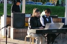 10 сентября, в парке "Чебурашка"хмурым, осенним днём своим душевным, солнечным и теплым настроением делились с жителями города учащиеся и преподаватели ДМШ №1: Валитова Л.М. и Гулевич С.А. радовали зрителей игрой на скрипке и баяне, а учащиеся вокального отделения своими песнями.
