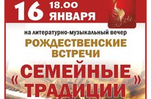 16.01.2018г. в 18.00 приглашаем всех желающих на Рождественский вечер "Семейные традициии". 11.01.2018