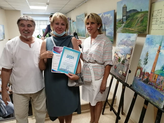 Укытучылар Рябушева Н.М. һәм Архипова С.Г. «Туган йорт җылысы» заманча сәнгать буенча XVI Халыкара арт-симпозиумда катнашучыларның эшләренең йомгаклау күргәзмәсен ачу тантанасында булдылар, ул Алабуга дәүләт музей-тыюлыгының Күргәзмәләр залында узды.