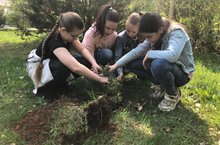 Выпускницы 5-В высадили деревья на аллее выпускников. Ученицы ДХШ №1 им.И.И.Шишкина посадили 14 мая саженцы голубой ели, деревковой вишни и сортовой сирени под руководством преподавателя Архиповой С.Г. в честь окончания школы. Традиция сажать деревья в честь выпуска существует в учреждении уже несколько лет. За это время традиционная акция помогла двору вокруг художественной школы превратиться в настоящую аллею, за которой ухаживают и берегут.