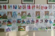 Сәнгать тарихы битләре "Византия сәнгате, костюм", "Роман сәнгате - урта гасыр замогы, урта гасыр рыцарь" темасына багышланган йомгаклау күргәзмәсе белән тәкъдим ителгән. 2 нче сыйныф укучылары үзләренең иҗади эшләрен укытучы Власова Г.В. җитәкчелектә үтәделәр.