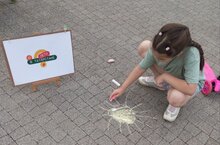 В рамках проектов "Культурная среда города", «Арт - скамейка» и программы «Лето в Татарстане» Детская художественная школа №2 провела очередное занятие с маленькими елабужанами. Дети нарисовали мелками на асфальте своё видение темы «Пусть всегда будет солнце»