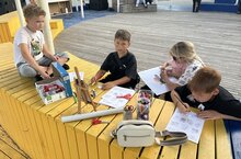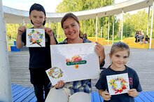 В память о лете можно сделать фотографию, можно собрать гербарий, а можно оформить открытку в подарок. В рамках проектов "Культурная среда города", «Арт - скамейка» и программы «Лето в Татарстане» Детская художественная школа №2 провела очередное занятие с маленькими елабужанами в городском парке Чебурашка. Под руководством преподавателя школы ребята создали открытки в технике аппликация.