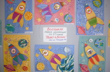 и нас с тобой! (В. Орлов)3D картины учащихся Б3 класса (преподаватель Гимаева Регина Мунавировна) создают эффект движения летящей ракеты в космосе. Выставка работ оформлена в фойе школы.