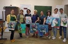 Оставить на память кусочек лета удалось преподавателям Детской художественной школы №2 на мастер-классе в технике масляная живопись "Пионы" от художницы Ларисы Исанбет, прошедшего 24 июня в рамках Всероссийского образовательного проекта "День с художником".