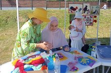 Гости Всероссийского турнира Туган батыр, проходившего в г.Елабуге на Чертовом городище, смогли не только сразиться в меткости и ловкости, но и принять участие в мастер-классе по изготовление салфетки в национальном колорите в рамках творческого проекта "ART - Skameika". Преподаватель Детской художественной школы №2 Салимова А.М. научила гостей праздника создавать национальные узоры путем валяния цветной шерсти.