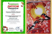 Поздравляем ученицу ДХШ №2 Камашеву Елизавету с победой в Международном конкурсе "В мире зимующих птиц"