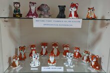 Замечательные тигрята, символ следующего года, выполненные в технике папье-маше уютно расположились на выставке "Усатый полосатый" в галерее детского творчества "Жираф".