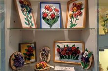 Шишки очень напоминают собой цветы, особенно, если их раскрасить определенным образом. Что и сделали обучающиеся ДХШ №2. На выставке "Фантазии из шишек" представлены картины с букетами из природного материала.
