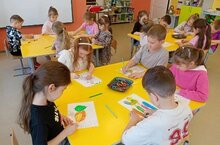 Бүген 4 нче төркемдә, Чебурашка, рәсем дәресләрендә традицион булмаган техника кулландылар. Дәрес мавыктыргыч һәм иҗади узды: балалар коктейль көпшәләр кулланып уникаль рәсем ясау техникасын үзләштерделәр. Бу метод кызыклы текстуралар һәм эффектлар булдырырга мөмкинлек бирә, һәр рәсемне кабатланмас итә. Катнашучылар трубканы ничек дөрес тотарга, буяу агымын көйләргә һәм төрле бизәкләр ясарга өйрәнделәр. Мондый шөгыль хыял, вак моторика үсешенә ярдәм итә һәм бик күп уңай хис-кичерешләр бирә.