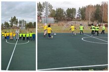 Первый футбольный матч среди наших воспитанников на спортивной площадке.