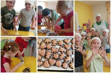 Невероятный аромат выпечки разносился по всему детскому саду. Когда печенье было готово, его украсили и с удовольствием его попробовали. Ребята сказали, что это было самое вкусное печенье на свете! Наверное, потому что они сделали его своими руками.Бүген 11нче әзерлек төркемендә балалар биләренең рецепты буенча "корица белән баллы печенье" дәресе үткәрделәр. Тәрбияченең сизгер җитәкчелегендә балалар камырны дөрес итеп әйләндерергә һәм махсус формалар белән булачак печенье фигураларын кисеп алырга өйрәнгәннәр. Балалар чиста һәм матур эшләнмәләр ясарга бик тырыштылар. Табын тулгач, балалар аны могҗизалы мич янына алып китәләр һәм 7 минутка куялар. Бу вакыт эчендә алар глазурь ясадылар,кондитер капчыгын тутырдылар.