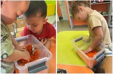 5 нче төркем тәрбияләнүчеләре төрле ком уеннары уйнарга бик яраталар.Kinetic sand games in kindergarten are gaining popularity. Kinetic sand is a loose material similar to wet and plastic beach sand. It is distinguished by its softness, fluidity, and during work, the kids' hands remain clean. Playing with sand is a natural and accessible form of activity for every child. Playing with kinetic sand is, first of all, the development of fine motor skills of the hands and tactile sensations. The following goals are also being implemented – the development of a child's tactile sense when working with two hands, which has a beneficial effect on the development of his speech, the development of concentration, concentration of attention, the formation of non-standard creative thinking.