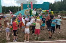 Escaping from the heat, we decided to spend Neptune Day not at the end, but at the beginning of July. Together with the educator in the image of the sea king, the pre-school children "got into the underwater Kingdom" (at sea), where they plunged into the "abyss of bright events" - played games, held relay races, remembered marine life, guessed riddles and of course poured themselves.