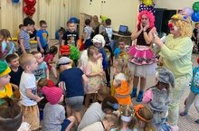Children and their parents came up with funny costumes. And our teachers have prepared a fun holiday for the children. Funny clowns came to visit the children, who throughout the holiday sang comic songs, told funny poems, danced, made riddles, participated in competitions and relay races. The children were delighted.